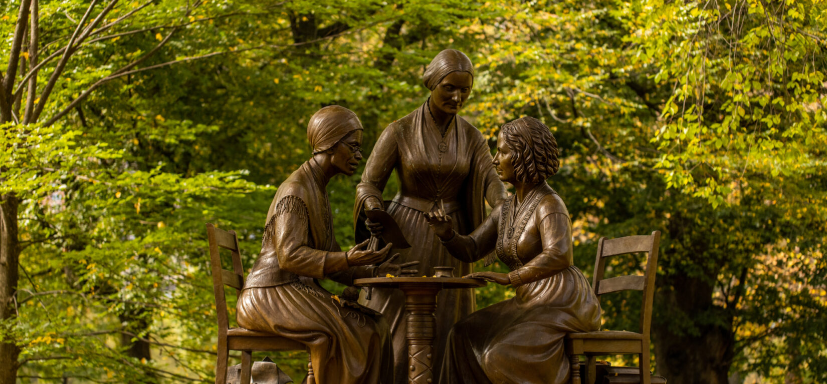The Women’s Rights Pioneers Monument, which consists of bronze figures of Sojourner Truth, Susan B. Anthony, and Elizabeth Cady Stanton, is the first monument in Central Park to depict actual women. The monument, sponsored and funded by the organization Monumental Women, commemorates the centennial of the ratification of the 19th Amendment, which gave women the right to vote. It’s part of the organization’s efforts to “break the bronze ceiling” by advocating for more commemoration of women in public spaces and promoting women’s history.